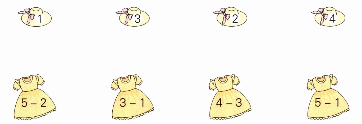 2. 下面的帽子该搭配哪条裙子?(连一连)