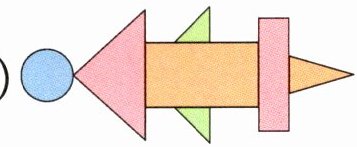 摆左边图形,没有用到(○ □ ▭ △),用了(4 5)个△。