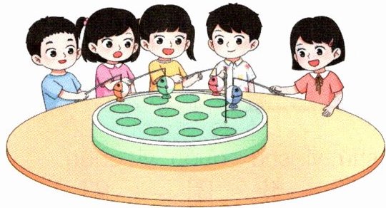 小朋友有(4 5)人,鱼有(4 5)条,有(1 2)人没有钓到鱼。