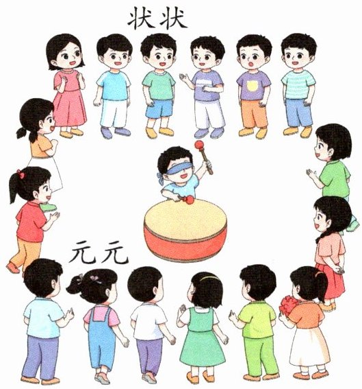 (2)第二轮,鼓声停,花在状状左边的第3个同学手上,用蓝笔圈出这个同学。