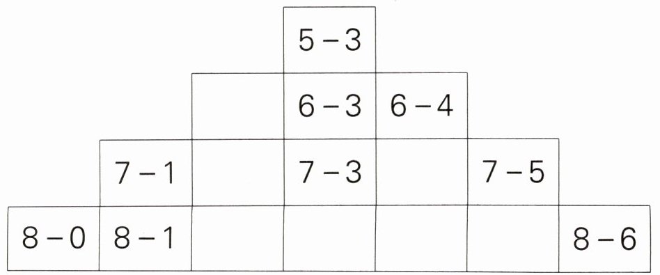 4. 下面是 10 以内减法表中的一部分,请你根据规律填出空格里缺少的算式,再找一找其中的规律。