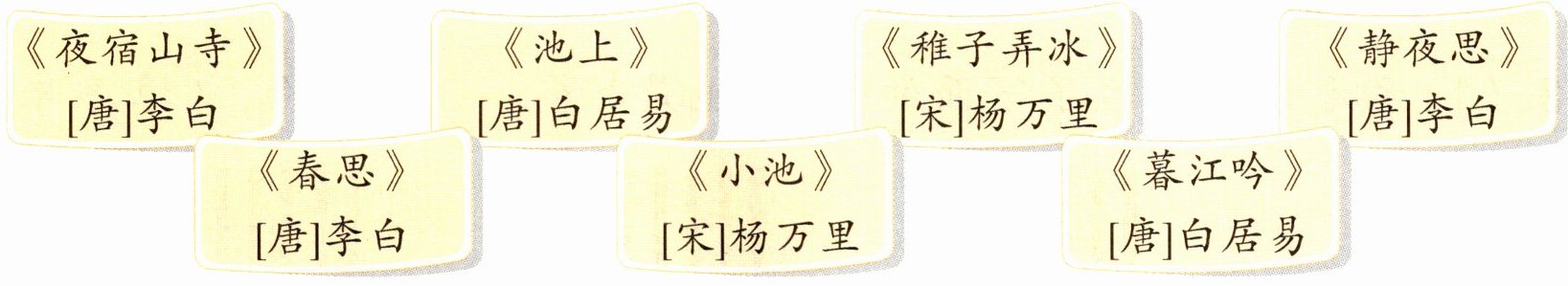 【解析】先观察卡片的特征,再确定分类标准分类,本题除答案给出的外,还可以按诗名字数、诗人名字字数等分类。