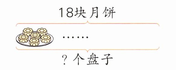 (块)(2) 18块月饼,每个盘子里放6块,需要几个盘子?