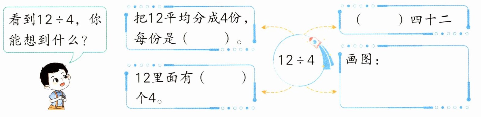 (2)$18÷6$中,被除数是( ),除数是( ),计算时想乘法口诀“( )”,求出商是( )。