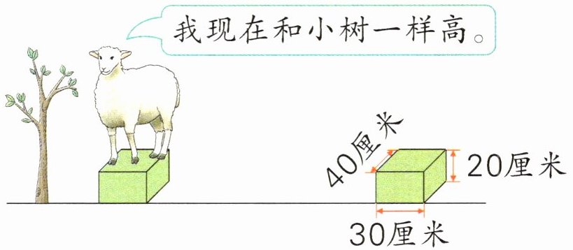 左边小树的高度是1米,小羊的身高是(