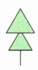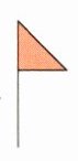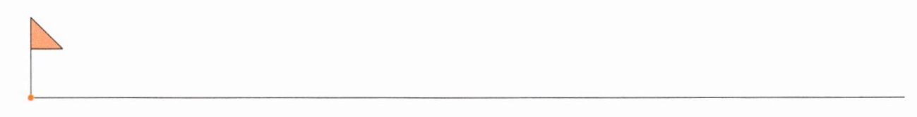 在给定线条上从旗子的位置向右量取2厘米处画一个圆圈,再从圆圈的位置向右量取4厘米处画一个三角形。