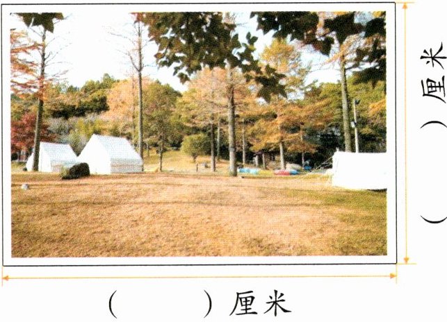 3. 右面是妈妈用相机拍的风景照,请你先量一量,填一填,再画一条比短边长 1 厘米的线段。