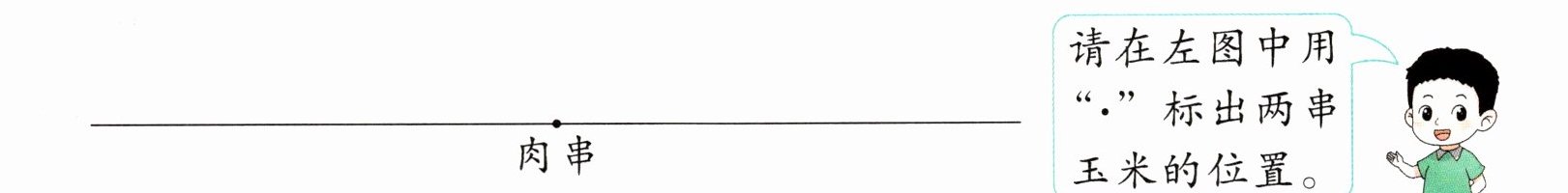2. 到达露营地,爸爸摆好烧烤架。元元先在上面放了一串肉串(如图),再在距离肉串 3 厘米处各放了一串玉米。