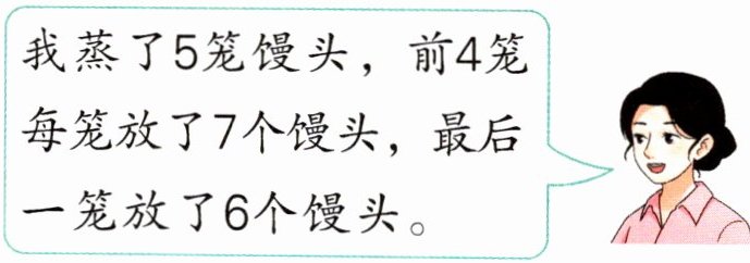 4. “二十九,蒸馒头。”你能根据下面妈妈说的话提出一个用乘法解决的问题并解答吗?