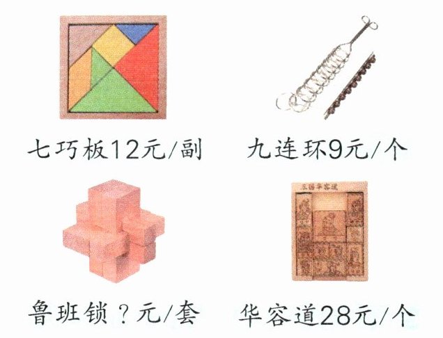 (2)提问不唯一,如:买2个九连环和1个华容道,一共需要多少钱?