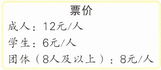 4. 2 位老师带 7 名学生参观民俗展览。怎样买票最划算? 最少需要多少钱?