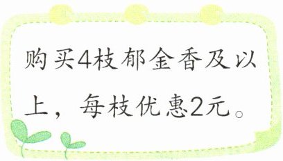 4. 菲菲准备了买 4 枝郁金香的钱,参与优惠活动后,实际可以买几枝?