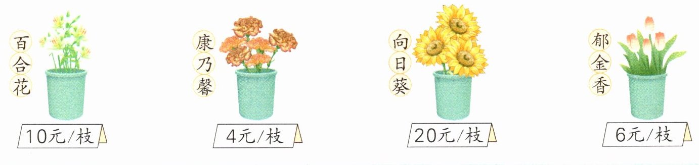 为了满足消费者的需求,美美花店的老板购入了各种各样的花。下面是美美花店部分花的价格。