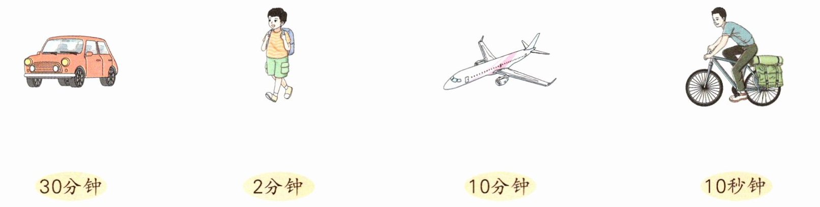 3. 用下面的出行方式行2千米需要多长时间?连一连。