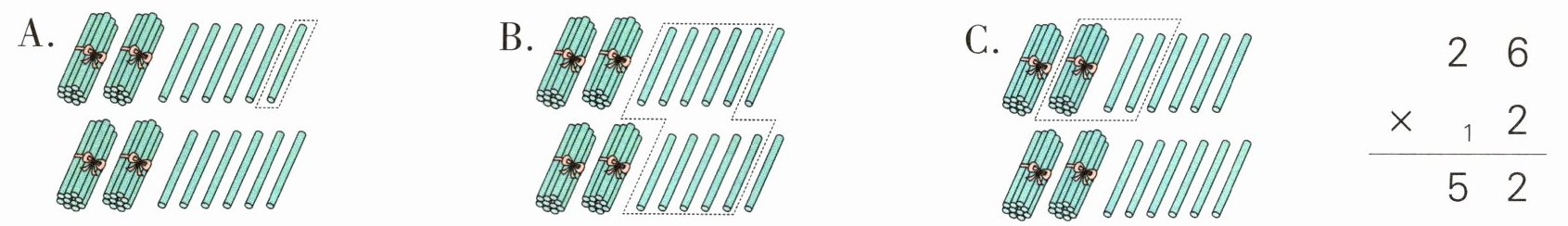 )中圈出来的小棒表示竖式中进位的“1”。(填序号)