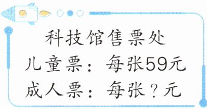 4. 刚上三年级的元元和爸爸、妈妈、奶奶一起参观科技馆。1 张成人票的价格是1张儿童票的 2 倍。元元一家四口购票需要多少钱?