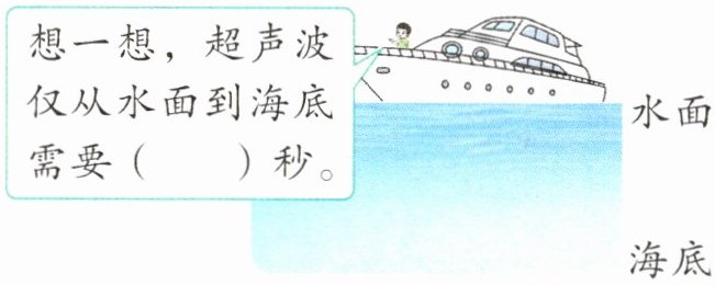 4. 探测船在水面对着海底竖直发射超声波,大约8秒后收到从海底返回的信号。已知超声波在海水中的传播速度大约是每秒1500米,此处的海水大约深多少米? 合多少千米?