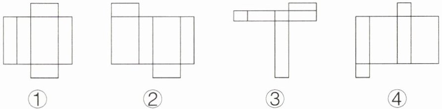 3. 菲菲用旧衣物做了一个头花,打算用长方体纸盒包装后送给妹妹作生日礼物。下面的四个展开图中,哪个能折成长方体纸盒?