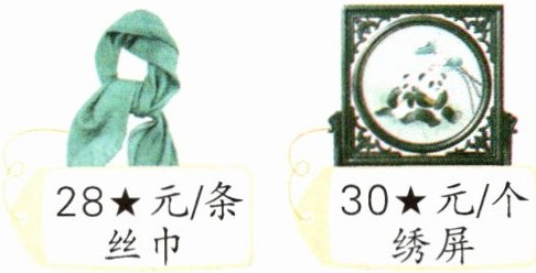 3个绣屏的价格不低于900元,不符合题意。所以她买的是丝巾。