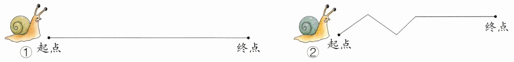 3. 下面哪只蜗牛爬行的路线比较长?用圆规比一比。