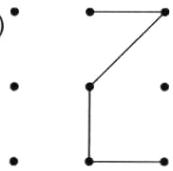 3. 请你按要求在下图中设计图形锁。(最少连 4 个点,最多连 9 个点,画一画)