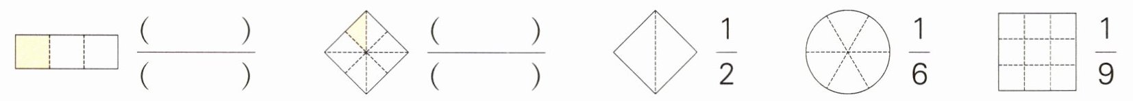 2. 用分数表示图中的涂色部分,或涂色表示出图右边的分数。
