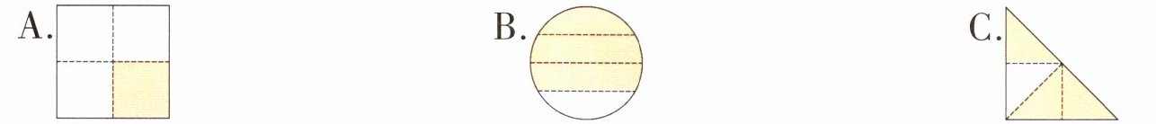 (2) 下面图形中,涂色部分可以用相同的分数表示的是(