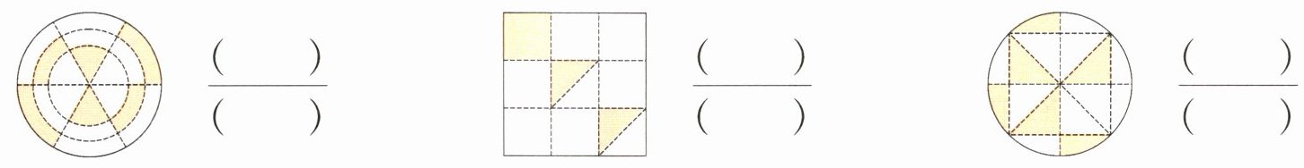 2. 用分数表示下面各图的涂色部分和没有涂色的部分。