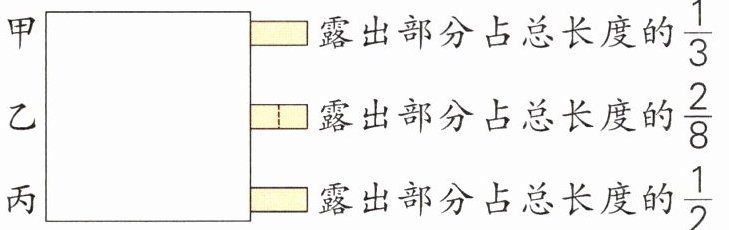 (1)甲露出部分占总长度的$\frac{1}{3}$,乙露出部分占总长度的$\frac{2}{8}$,丙露出部分占总长度的$\frac{1}{2}$