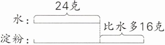 【解析】由线段图可知,1杯水24克,5勺淀粉的质量比1杯水多16克,所以先用加法求出5勺淀粉的质量,再除以5就可以求出1勺淀粉的质量。