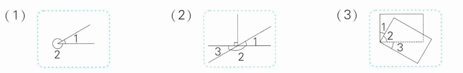 (2) 将一本书翻至摊平的过程中,纸张形成的角的变化依次是( )角、( )角、( )角、平角。
