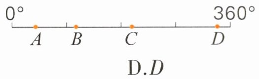 (3) 如图,用线段表示 $0^{\circ} \sim 360^{\circ}$,点( )表示钝角。