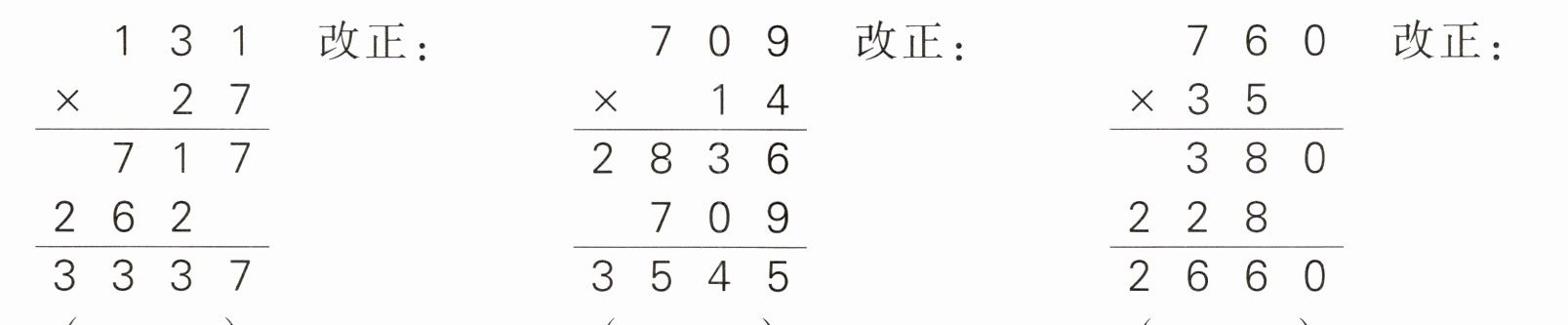 3. 下面的计算对吗?对的画“$√$”,错的画“$×$”并改正。
