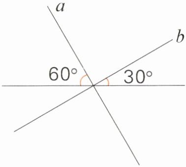 直线a和直线b互相垂直。因为直线a和直线b的夹角为180°−60°−30°=90°,是直角,所以直线a和直线b互相垂直。[解析]由图可知,∠1=180°−60°−30°=90°,∠1是直线a和直线b的夹角,直线a和直线b相交所形成的角是90°,是直角,所以直线a和直线b互相垂直。