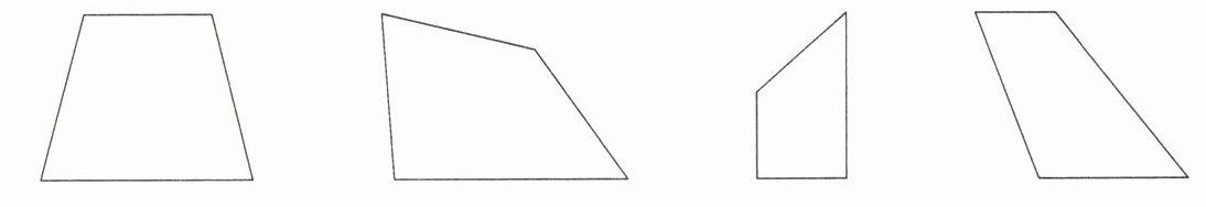 1. 下面哪些图形是梯形?画出每个梯形的一条高并标出它们的上底、下底和腰。
