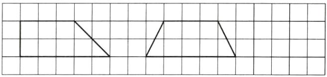 2. 在方格纸上画两个形状不同的梯形,它们的上底是3厘米,下底是5厘米,高是2厘米。(每个小方格的边长为1厘米)