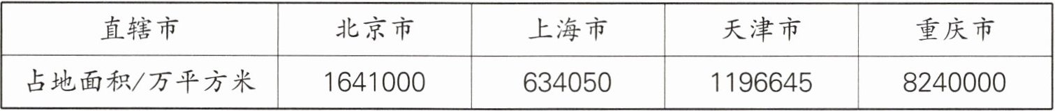 1. 四大直辖市的占地面积如下表。