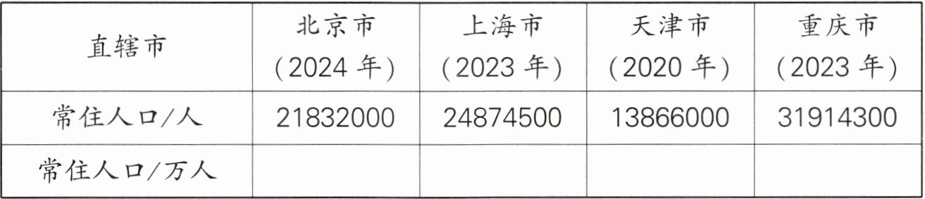 3. 下面是四大直辖市某年年末的全市常住人口数,省略万位后面的尾数求近似数。
