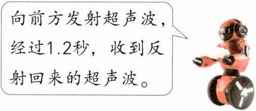 4. 菲菲在参观的过程中了解到超声测距能帮助机器人自动避开障碍物行走。已知超声波在空气(15℃)中的传播速度是每秒340m,那么下面这个机器人距离前方的障碍物有多远呢?