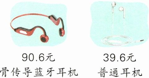 3. 下面左图是一款新型骨传导蓝牙耳机,采用了骨传导技术,通过人的骨骼传递声波。李叔叔带了300元,买2副骨传导蓝牙耳机后,还能买几副普通耳机?