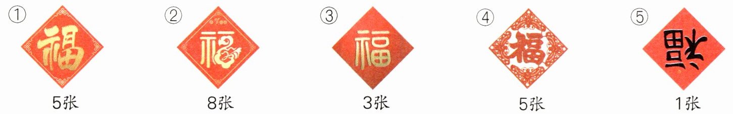 1. (1)欢天喜地过大年,元元收集到的5种福字贴纸数量如下: