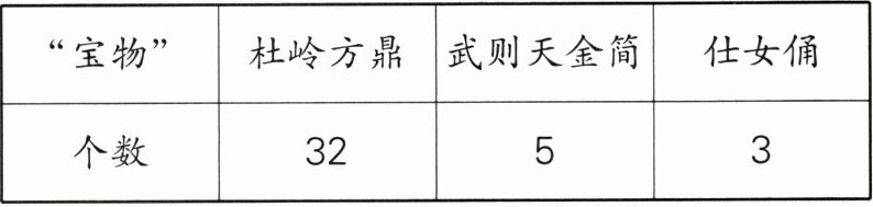 1. 五(1)班同学参观河南博物院,下面是40位同学从“考古盲盒”中挖出“宝物”的情况,根据表中的数据推测,盲盒中(