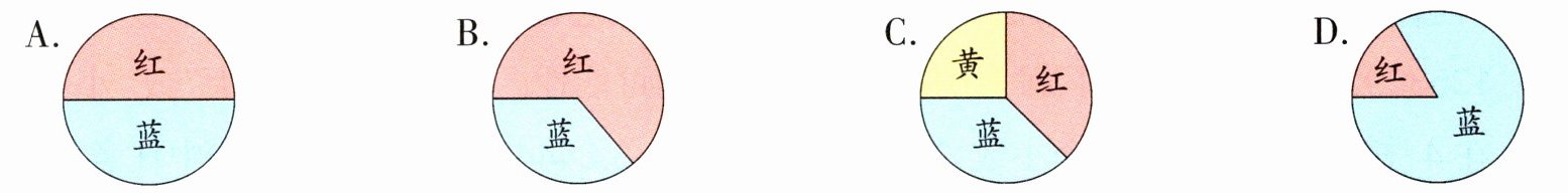 (1) 菲菲参加转盘游戏,一共转了20次,其中3次指针指向红色,17次指针指向蓝色,游戏中使用的转盘最有可能是(