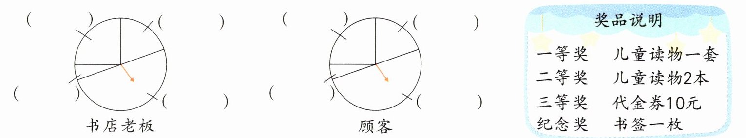 一等奖、二等奖、三等奖、纪念奖(答案合理即可,根据不同角色设计奖项面积大小,如书店老板设计纪念奖面积最大,一等奖面积最小;顾客设计一等奖面积最大,纪念奖面积最小等)