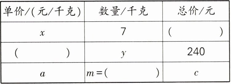 (表格从上往下)7x $240÷ y$ $c÷ a$ $m=c÷ a=1386÷19.8=70$