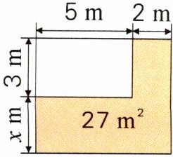 元元是根据“大长方形的面积-小长方形的面积=涂色部分的面积”列出的方程。还可以这样列方程求解:(5+2)x+3×2=27 x=3