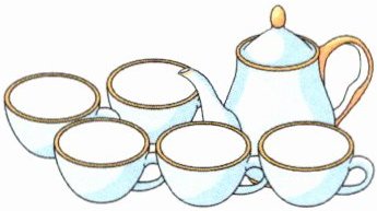 3. 如图,买这一套茶具共花了 $ 108 $ 元,其中茶壶的单价是茶杯单价的 $ 4 $ 倍。茶壶和茶杯的单价各是多少元?