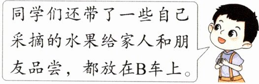 3. 到达果园后,同学们分组进行采摘活动,菲菲、状状和元元 3 人分为一组。下面是他们采摘的情况。