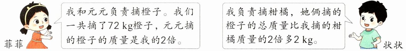 菲菲和元元各摘了多少千克橙子?状状摘了多少千克柑橘?