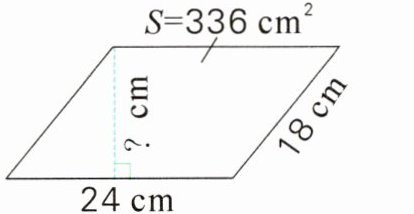 【解析】高不变,底减少4cm,相当于减少了一个同高、底为4cm的平行四边形的面积,由h=S÷a可求得原平行四边形卡片的高为24÷4=6(cm)。底不变,高增加4cm,相当于增加了一个同底、高为4cm的平行四边形的面积,由a=S÷h可求得原平行四边形卡片的底为40÷4=10(cm)。最后利用S=ah求原平行四边形卡片的面积。